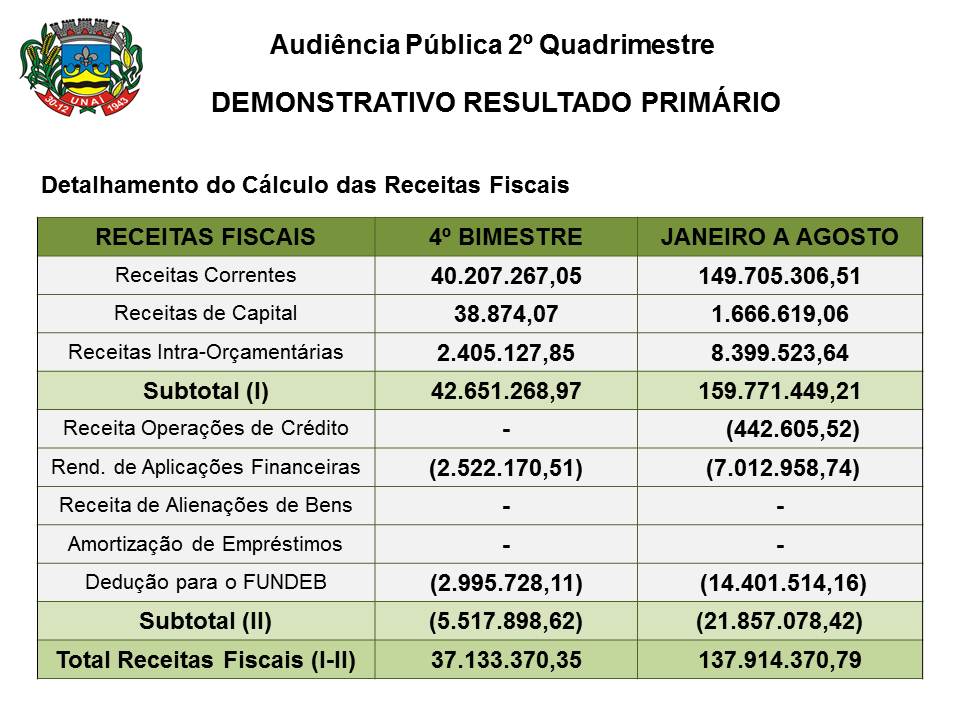 Cumprimento das metas fiscais - 2º quadrimestre de 2017